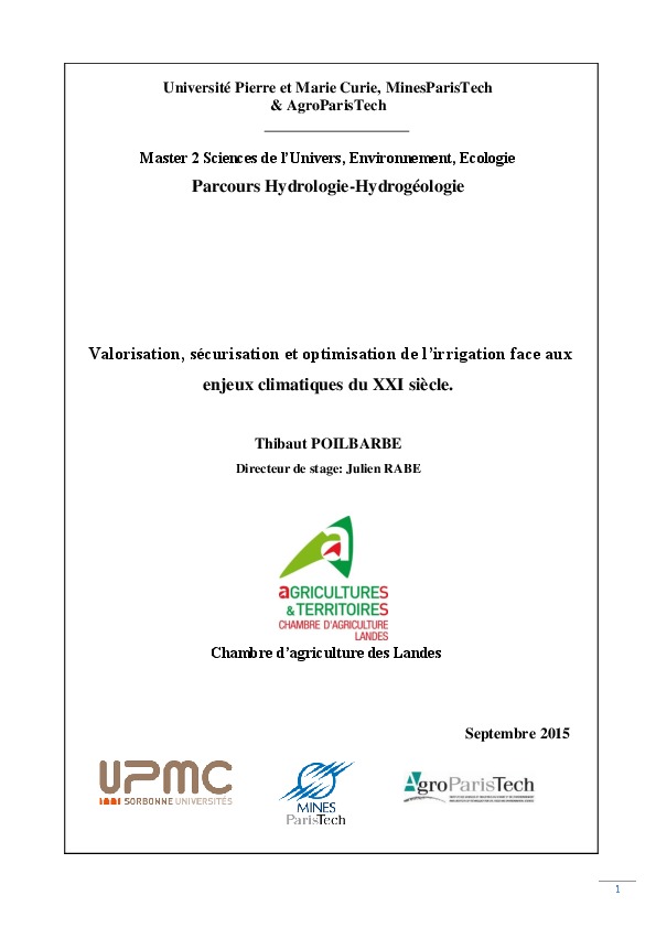 Valorisation, sécurisation et optimisation de l'irrigation face aux enjeux climatiques du XXI siècle