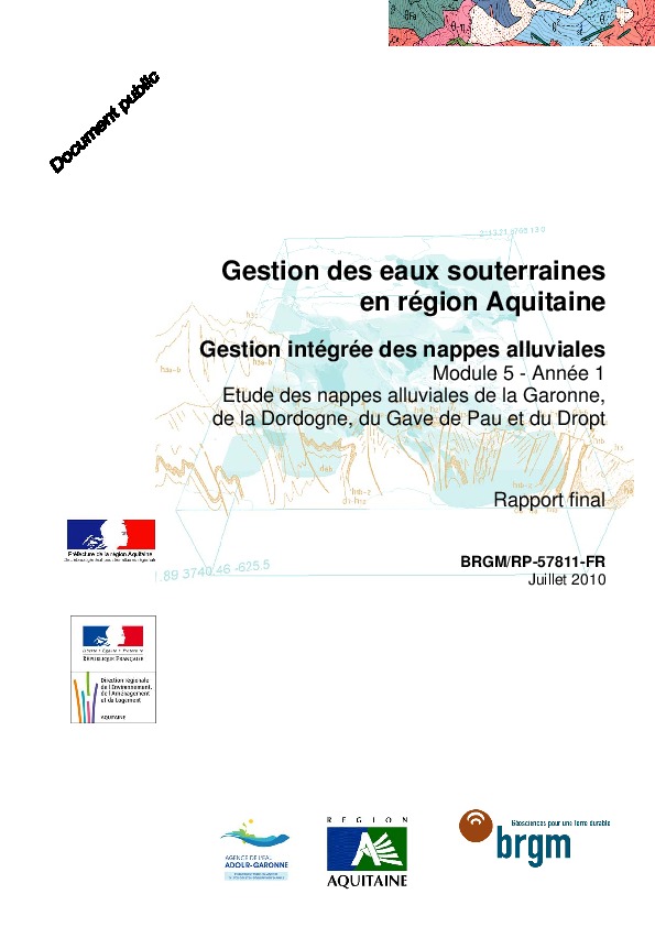 Gestion des eaux souterraines en Région Aquitaine. Gestion intégrée des nappes alluviales. Etude des nappes alluviales de la Garonne, de la Dordogne, du Gave de Pau et du Dropt-Module 5.