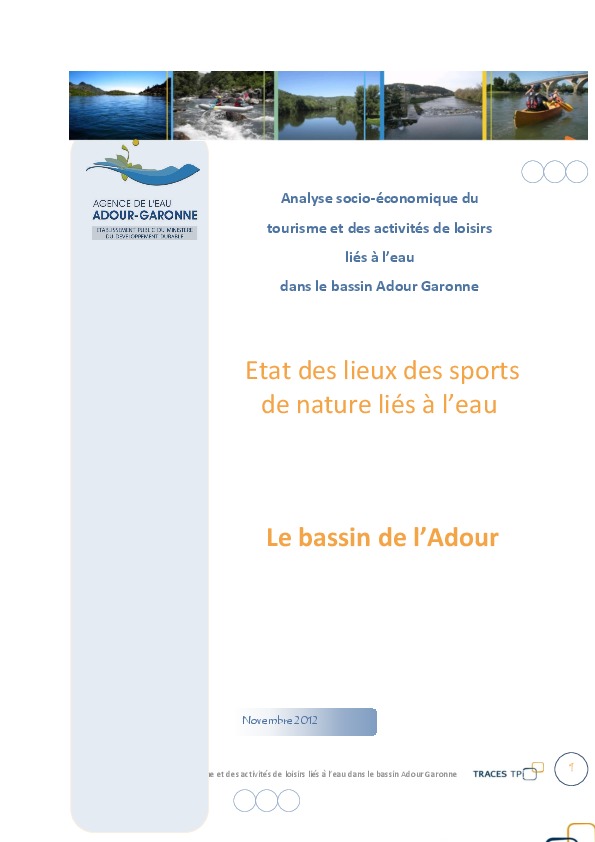 L'étude propose un état des lieux de l'activité touristique dans le bassin Adour Garonne, un diagnostic des activités sports nautiques et loisirs liés à l'eau puis une évaluation de leur poids économique.