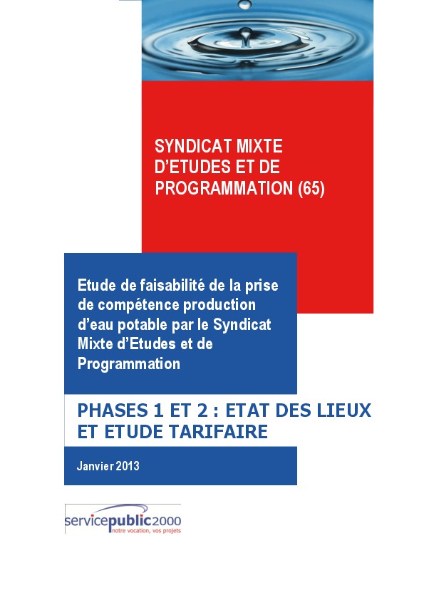 Etude de faisabilité de la prise de compétence production d'eau potable par le Syndicat Mixte d'Etudes et de Programmation - PHASES 1 ET 2 : ETAT DES LIEUX ET ETUDE TARIFAIRE