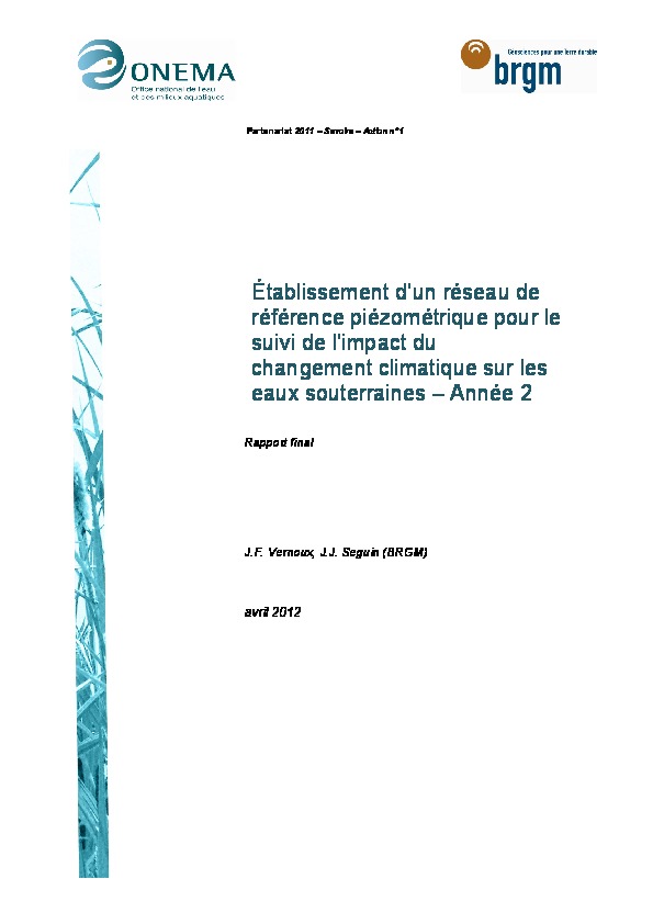 Établissement d'un réseau de référence piézométrique pour le suivi de l'impact du changement climatique sur les eaux souterraines - année 2.