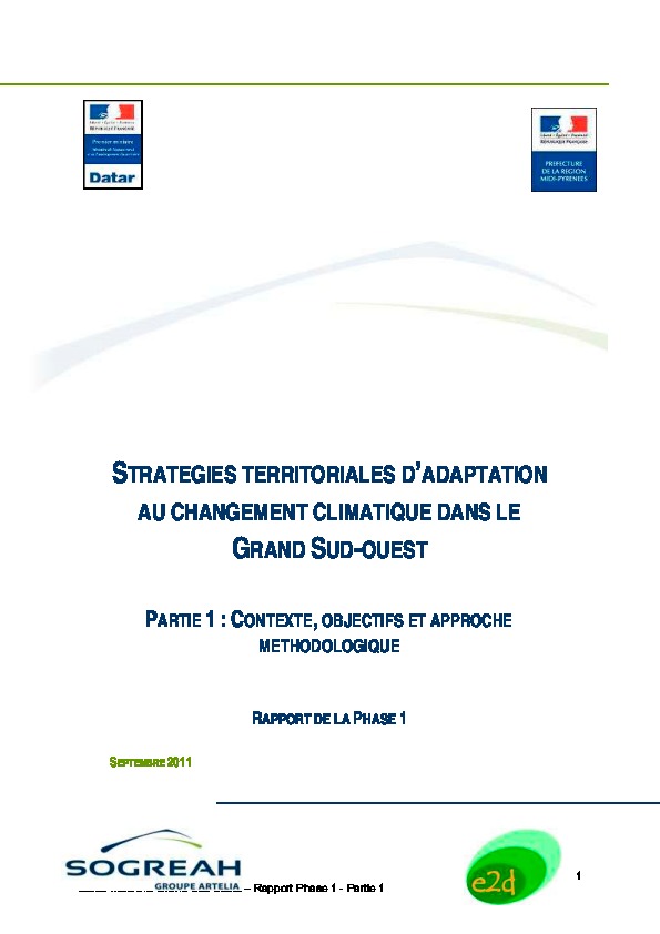 Il s'agit d'une étude, portant, au niveau interrégional, sur « les stratégies d'adaptation territoriale au changement climatique » pour l'ensemble des quatre régions Midi-Pyrénées, Aquitaine, Poitou-Charentes et Limousin."