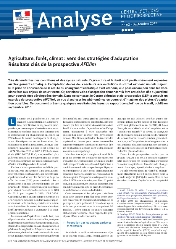 AFClim - Agriculture, forêt, climat : vers des stratégies d'adaptation - Résultats clés de la prospective
