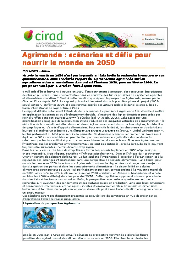 Agrimonde 2050 - Synthèse du projet par le CIRAD
