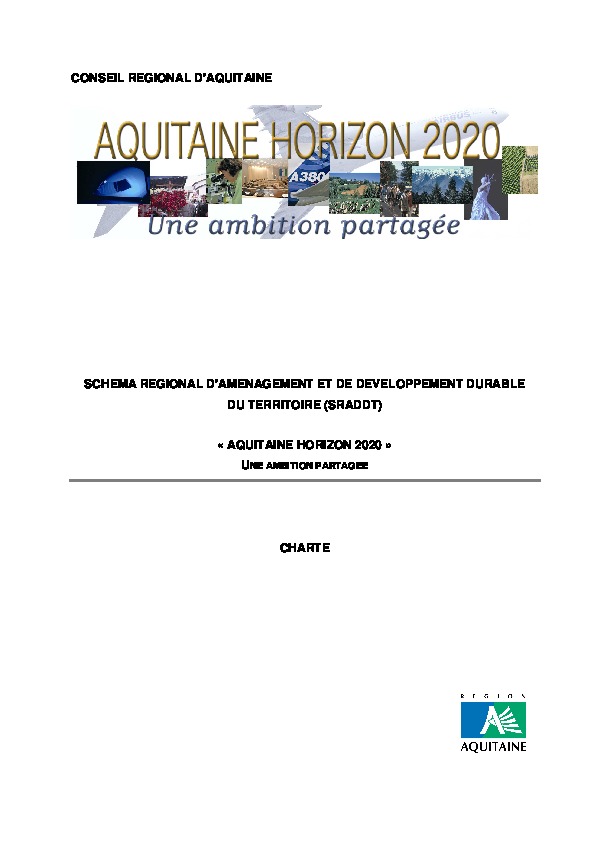SCHEMA REGIONAL D'AMENAGEMENT ET DE DEVELOPPEMENT DURABLE DU TERRITOIRE (SRADDT) - CHARTE « AQUITAINE HORIZON 2020 » UNE AMBITION PARTAGEE