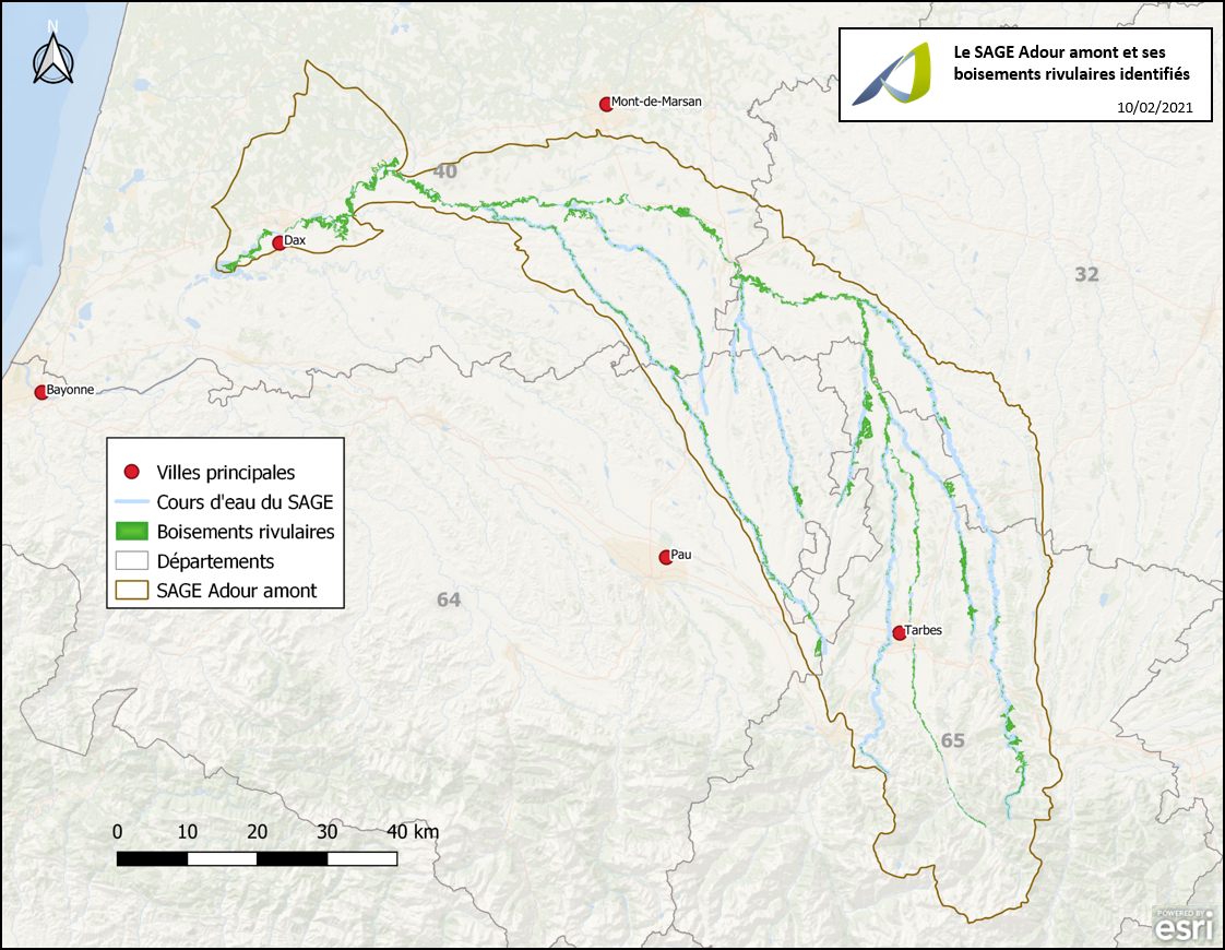 C'est donc dans ce cadre que l'Institution Adour s'est lancée dans une démarche visant à identifier et préserver les forêts riveraines, ou boisements rivulaires, sur un sous-bassin porteur de nombreux enjeux : l'Adour amont.