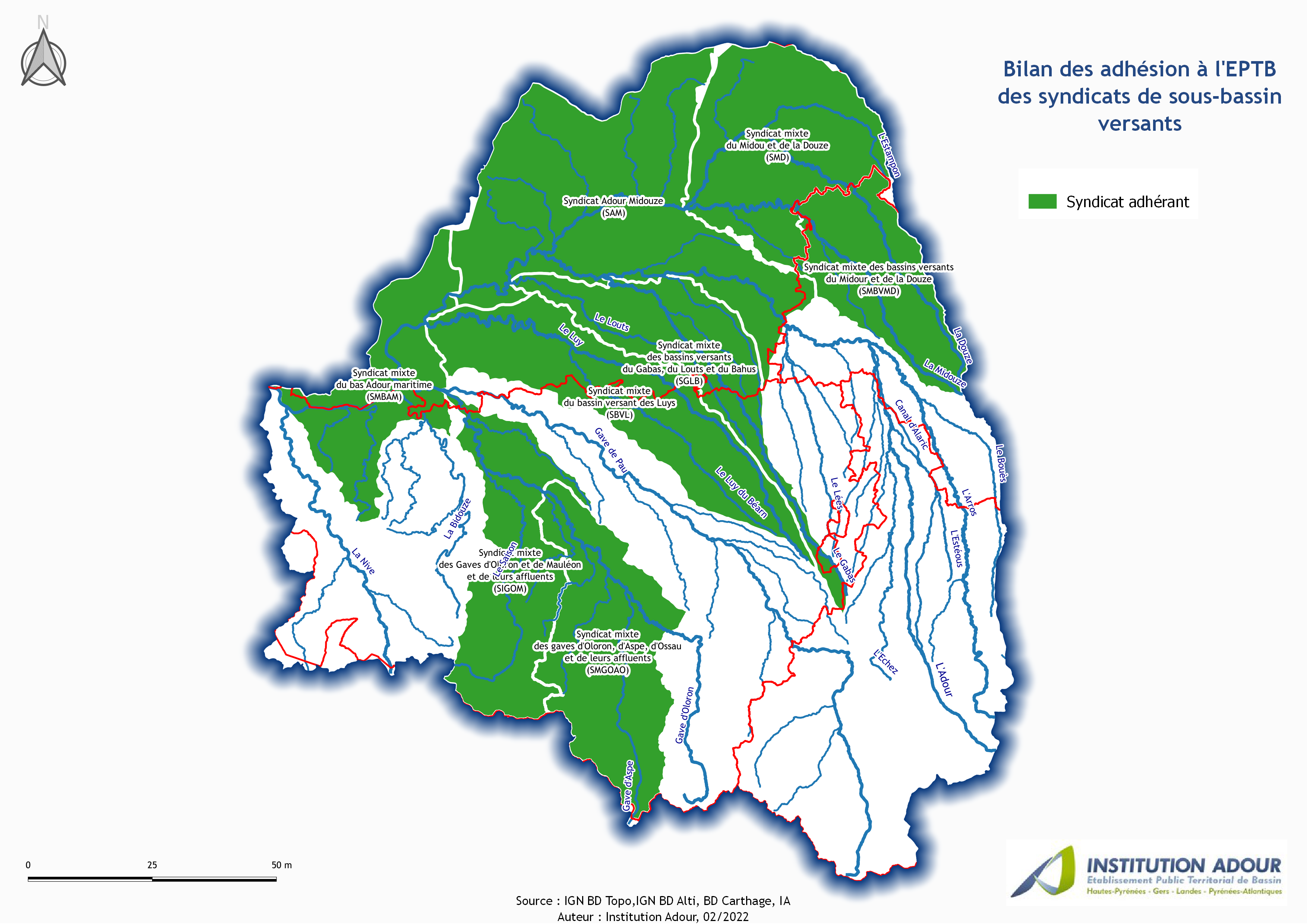 Sur le bassin de l'Adour, huit syndicats mixtes exerçant la compétence GEMAPI ont adhéré à l'Institution Adour :