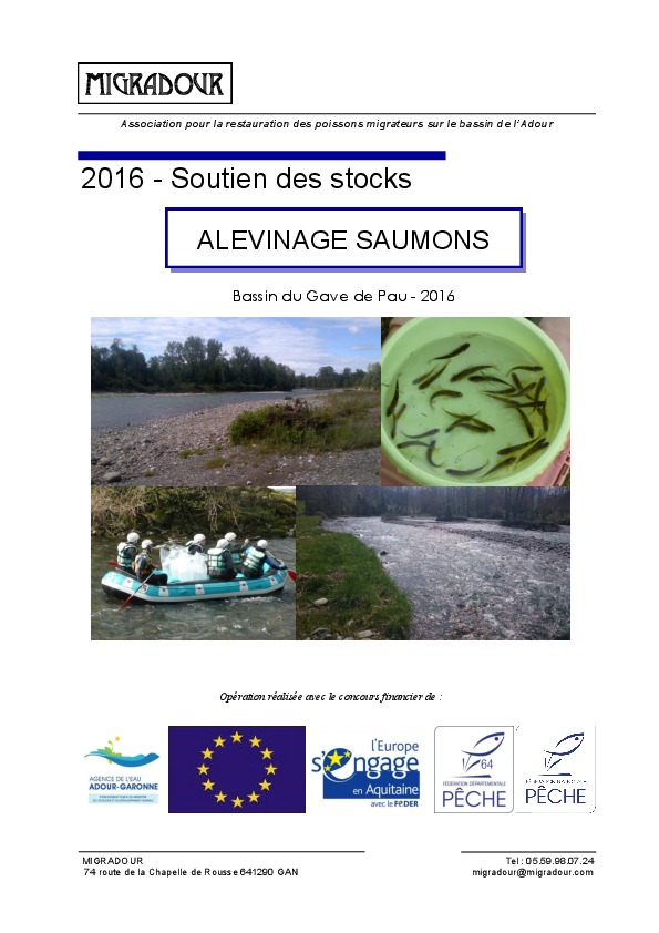 Soutien des stocks - Alevinage saumons - Bassin du Gave de Pau - 2016