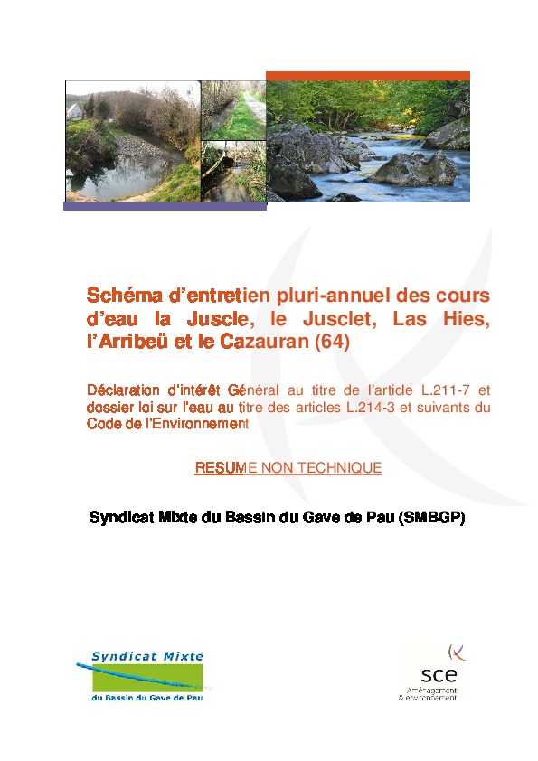 Schéma d'entretien pluriannuel des cours d'eau la Juscle, le Jusclet, Las Hies, l'Arribeü et le Cazauran (64) - DIG et dossier Loi sur l'eau - Résumé non technique.
