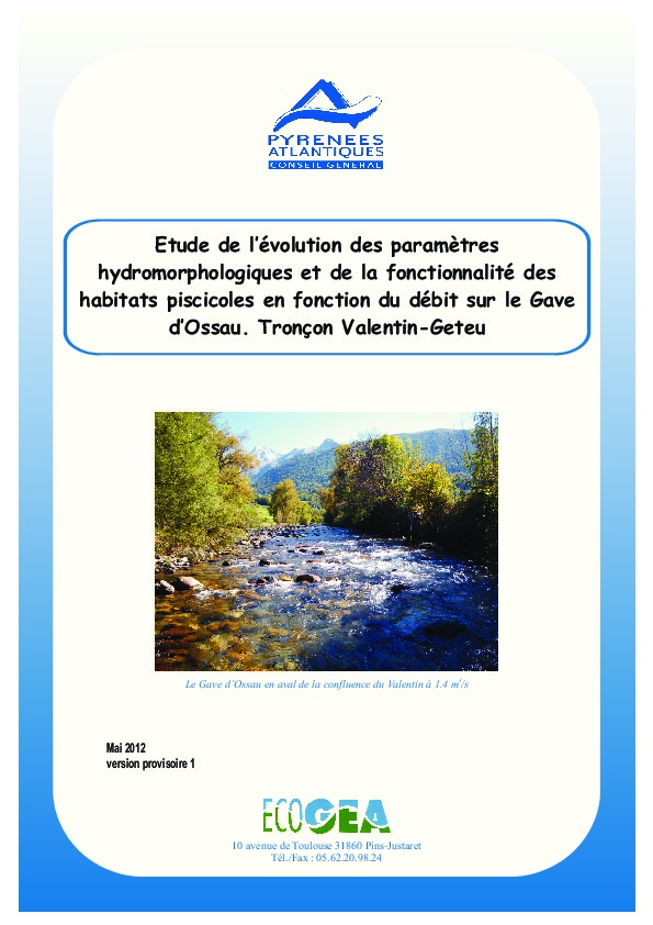 Etude de l'évolution des paramètres hydromorphologiques et de la fonctionnalité des habitats piscicoles en fonction du débit sur le Gave d'Ossau. Tronçon Valentin-Geteu.