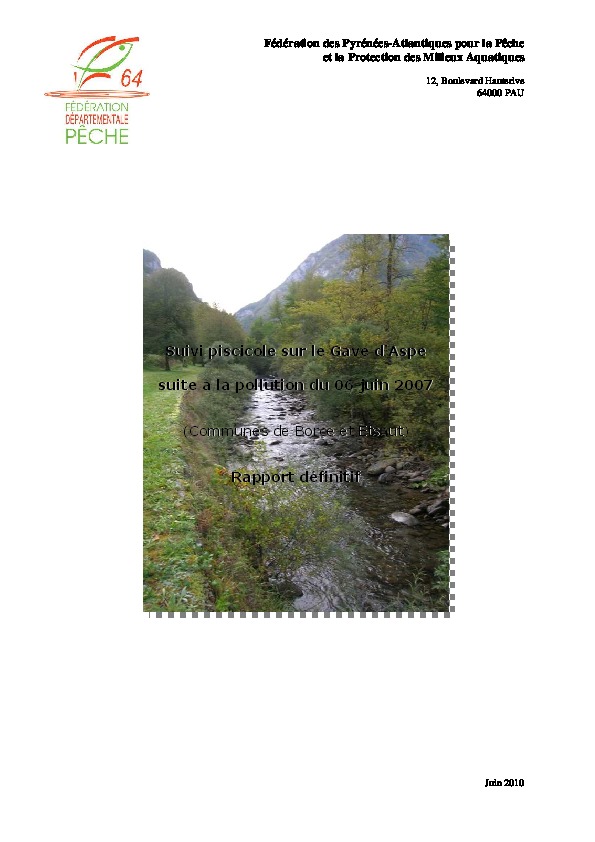 Suivi piscicole sur le Gave d'Aspe suite à la pollution du 6 juin 2017 (communes de Borce et Etsaut) - Rapport définitif