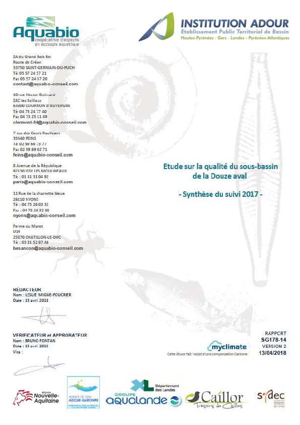 Etude sur la qualité du sous bassin de la Douze aval - Synthèse du suivi 2017