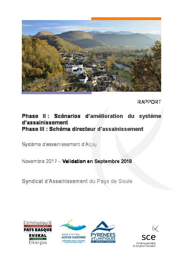 Système d'assainissement d'Alcay - Phase I- Scénarios d'amélioration du système d'assainissement - Phase II - Schéma directeur d'assainissement