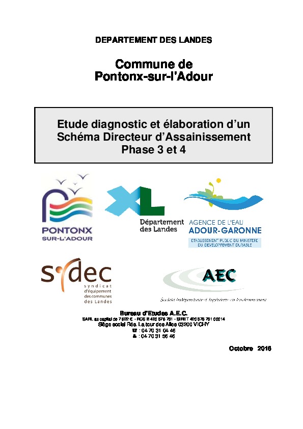 Commune de Pontonx sur l'Adour - Etude diagnostic et élaboration d'un Schéma Directeur d'Assainissement Phase 3 et 4.