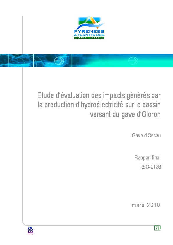 Evaluation des impacts générés par la production d'hydroélectricité sur le bassin versant du Gave d'Oloron - Gave d'Ossau.