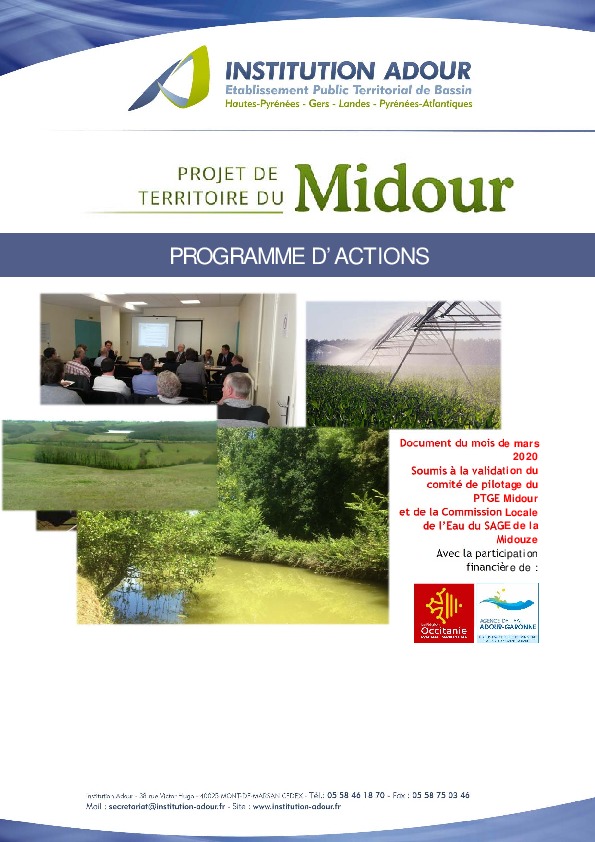 Mots clés : action, changement climatique, concertation, gestion concertée, irrigation, milieu naturel, prélèvement en eau, programme, projet de territoire, qualité, réservoir, ressource en eau, salubrité, sensibilisation, stockage, usage de l’eau