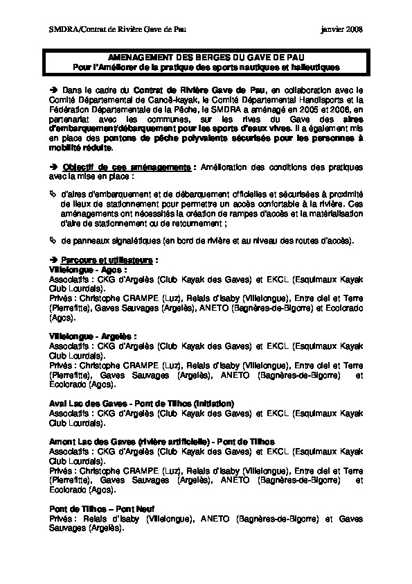 Aménagement des berges du Gave de Pau - Pour l'améliorer de la pratique des sports nautiques et halieutiques