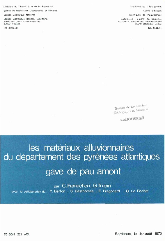 L'étude évalue les réserves en matériaux alluvionnaires de la vallée du Gave de Pau entre Lestelle-Bétharram et Maslacq, afin de répondre aux besoins en granulats de la région paloise entre 1975 et 1985. Elle estime les réserves disponibles à 360 Mm3, pour des besoins de 11 Mm3 pour la période considérée.