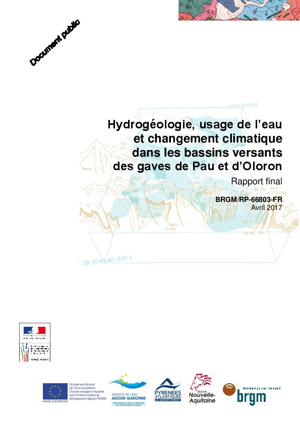Hydrogéologie, usage de l'eau et changement climatique dans les bassins versants des gaves de Pau et d'Oloron. Rapport final.