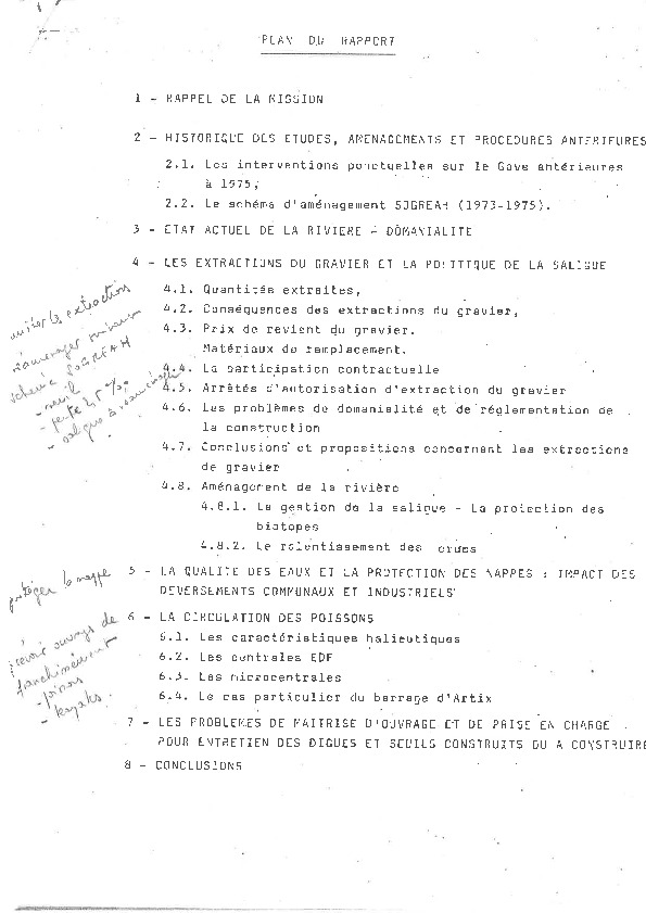 Ce rapport de l'Inspection Générale de l'Equipement et de l'Environnement porte sur des propositions d'aménagement du Gave de Pau entre Bétharram et Orthez. Le contexte est une destabilisation du lit et une érosion suite à un fort développement de l'extraction de granulats en lit mineur (forte demande due à la construction de l'A64). Il fait l'historique de l'aménagement du Gave, émet un avis sur le Schéma SOGREAH de 1975 et analyse l'impact sur les milieux et l'activité économique.