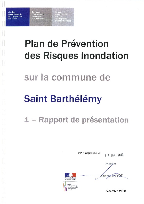 Plan de prévention des risques d'inondation sur la commune de Saint Barthélémy. Rapport de présentation
