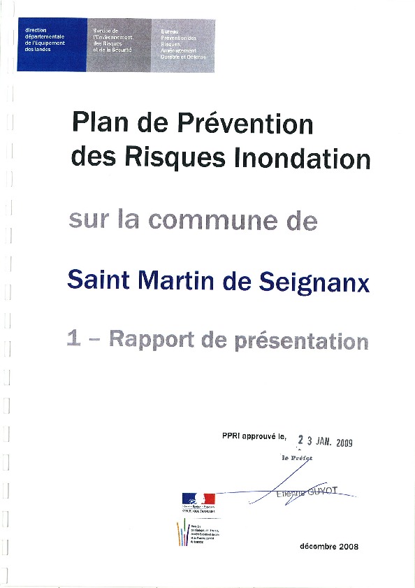 Plan de Prévention des Risques Inondation sur la commune de Saint Martin de Seignanx - rapport de présentation.