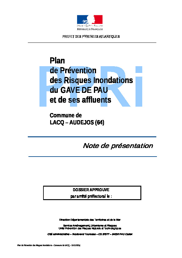 Plan de Prévention des Risques Inondations du Gave de Pau et de ses affluents - Commune de LACQ-AUDEJOS (64)