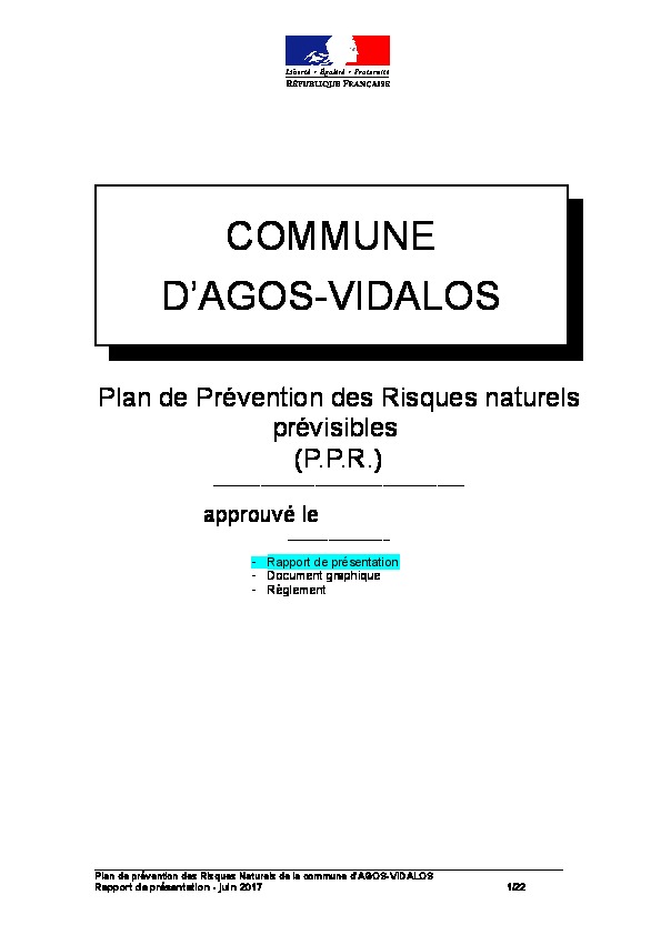 Commune d'AGOS-VIDALOS - Plan de Prévention des Risques naturels prévisibles (PPR) - Rapport de présentation.
