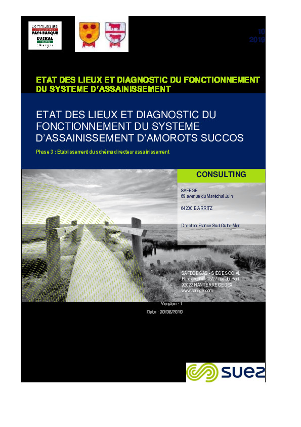 Etat des lieux et diagnostic du fonctionnement du système d'assainissement d'Amorots-Succos - Phase 3 - Etablissement du schéma directeur d'assainissement.