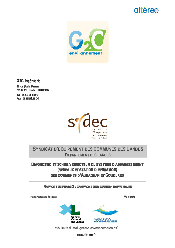 Diagnostic et schéma directeur du système d'assainissement des communes d'Aubagnan et de Coudures. Rapport de phase 3.