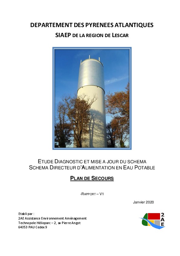 SIAEP de la Région de Lescar - Etude diagnostic et mise à jour du schéma directeur d'alimentation en eau potable