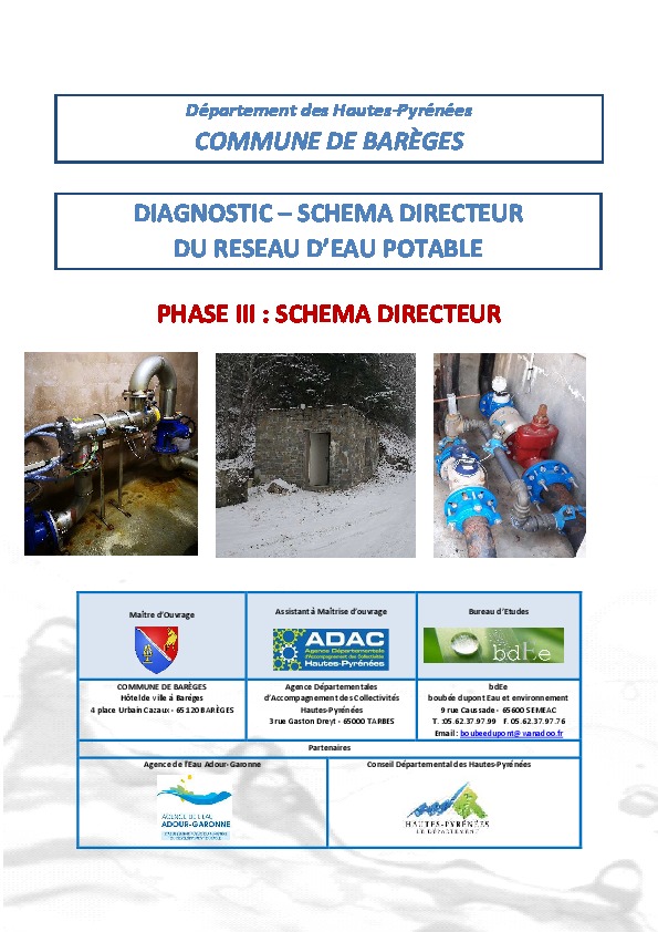 Commune de Barèges - Diagnostic - Schéma directeur du réseau d'eau potable - Phase III : Schéma directeur