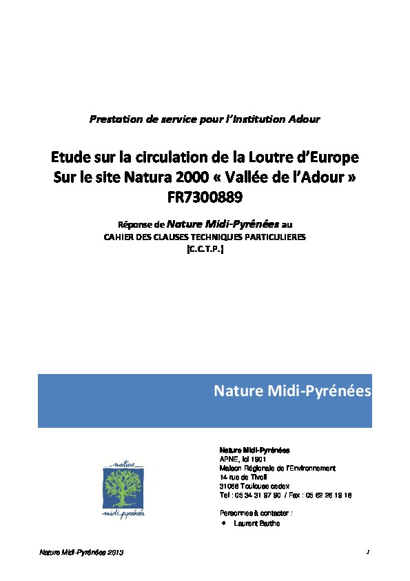 Etude sur la circulation de la Loutre d'Europe sur le site Natura 2000 "Vallée de l'Adour" FR7300889