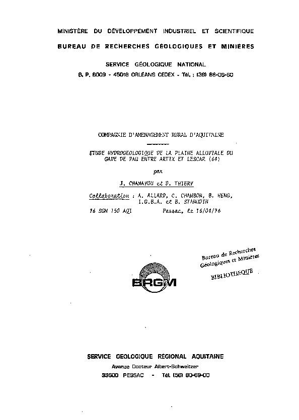 Etude hydrogéologique de la plaine alluviale du GAVE DE PAU entre ARTIX et LESCAR.