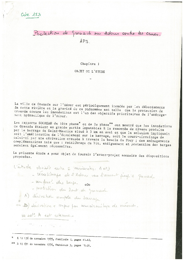 Protection de GRENADE-SUR-ADOUR contre les crues. Avant projet sommaire.