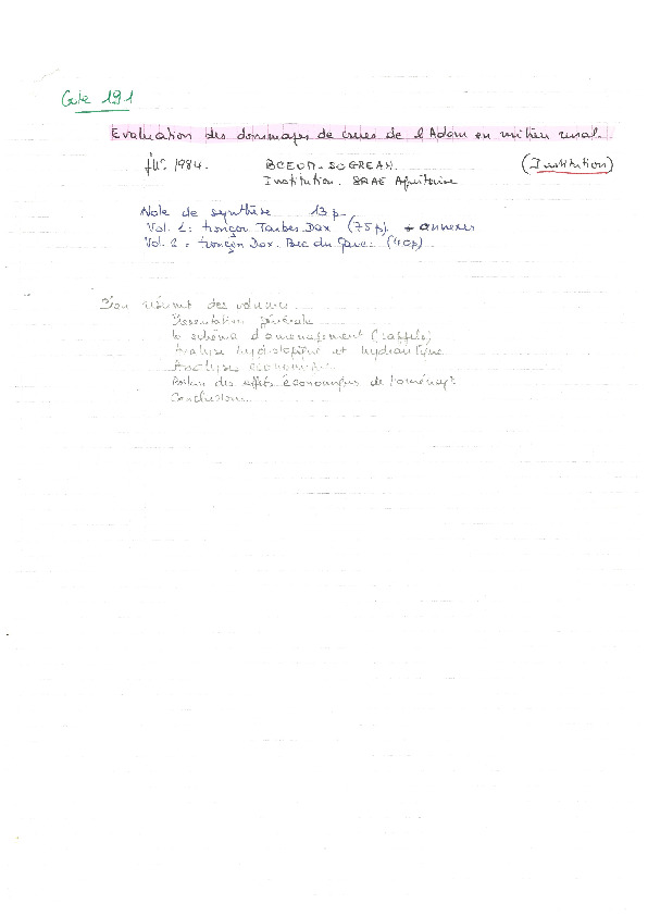 Evaluation de dommages de crues de l'ADOUR en milieu rural. (2 volumes).