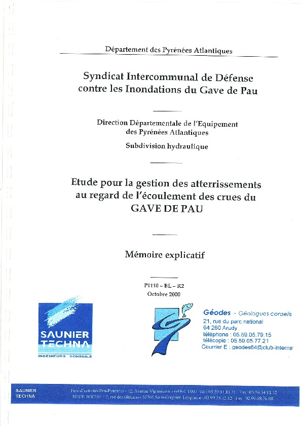 Etude pour la gestion des atterrissements au regard de l'écoulement des crues du GAVE DE PAU.