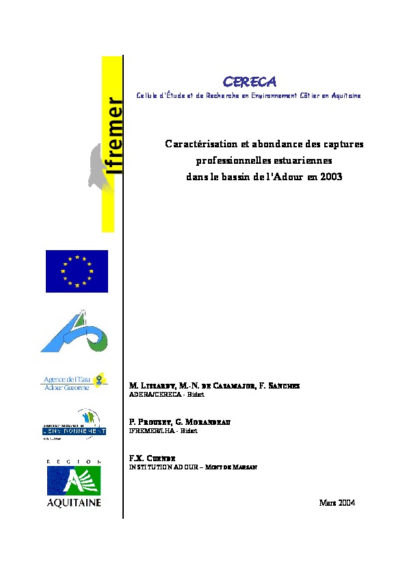 Caractérisation et abondance des captures professionnelles estuariennes dans le bassin de l'ADOUR en 2003.