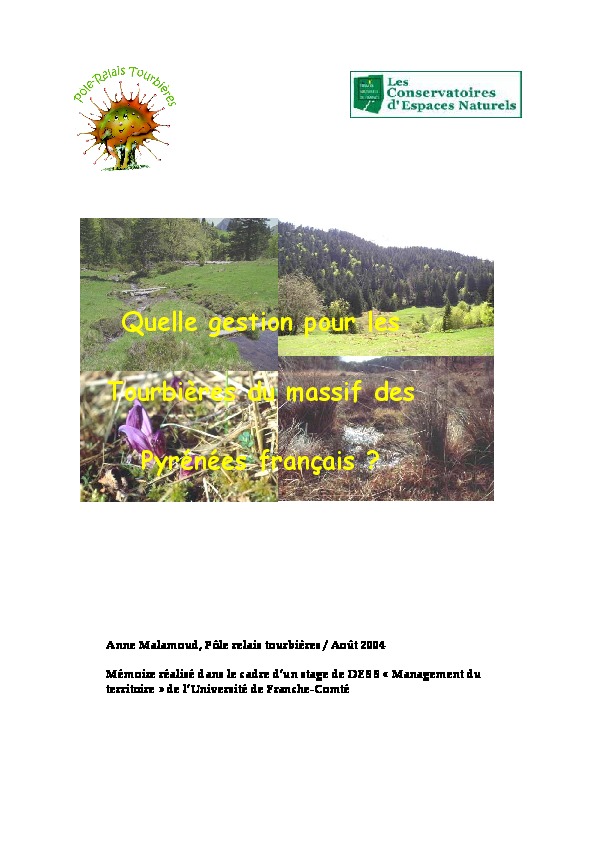 Quelle gestion pour les tourbières du massif des PYRENEES française? Mémoire de stage.