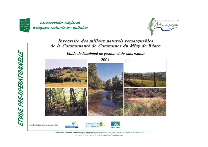 Inventaire des milieux naturels remarquables de la Communauté de Communes du Miey de Béarn. Etude de faisabilité de gestion et de valorisation (CDROM.
