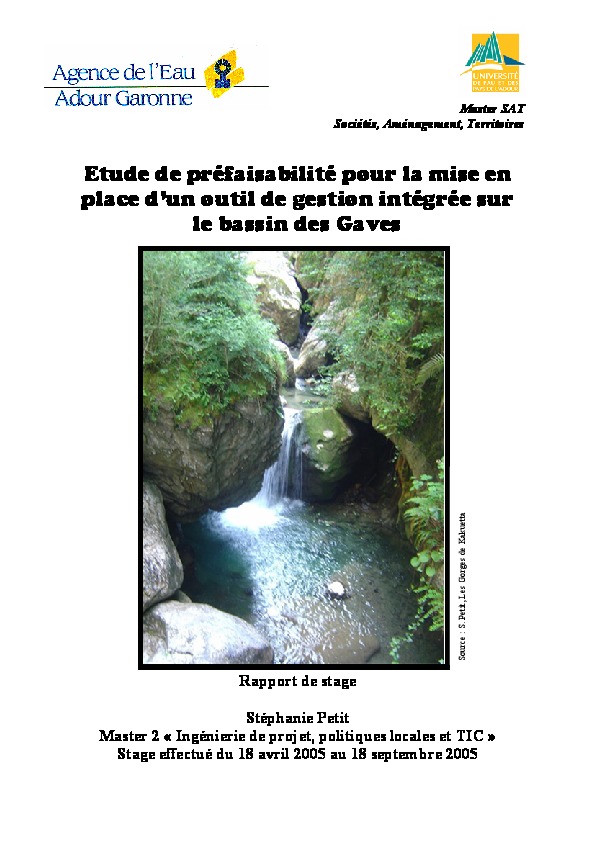 A la suite d'un état des lieux demandé par la directive cadre sur l'eau sur tous les bassins versants, la Commission géographique du bassin de l'Adour s'est interrogée sur l'opportunité et l'intérêt de mettre en place sur le bassin des Gaves un outil de gestion intégrée. L'étude dresse un bilan des procédures conduites, rassemble les informations permettant de juger de l'opportunité d'une telle démarche, et d'identifier les partenaires potentiels.