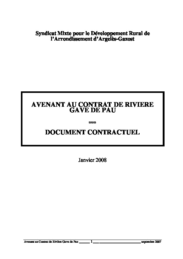 Avenant au contrat de rivière GAVE DE PAU. Document contractuel.