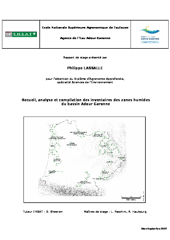 Recueil, analyse et compilation des inventaires des zones humides du BASSIN ADOUR-GARONNE.