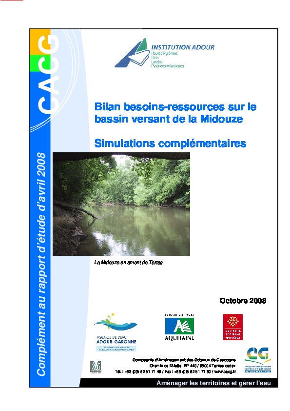 Bilan besoins-ressources sur le bassin-versant de la Midouze. Simulations complémentaires.