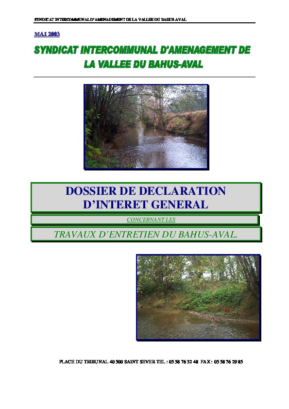 Dossier de DIG concernant les travaux d'entretien du Bahus aval.