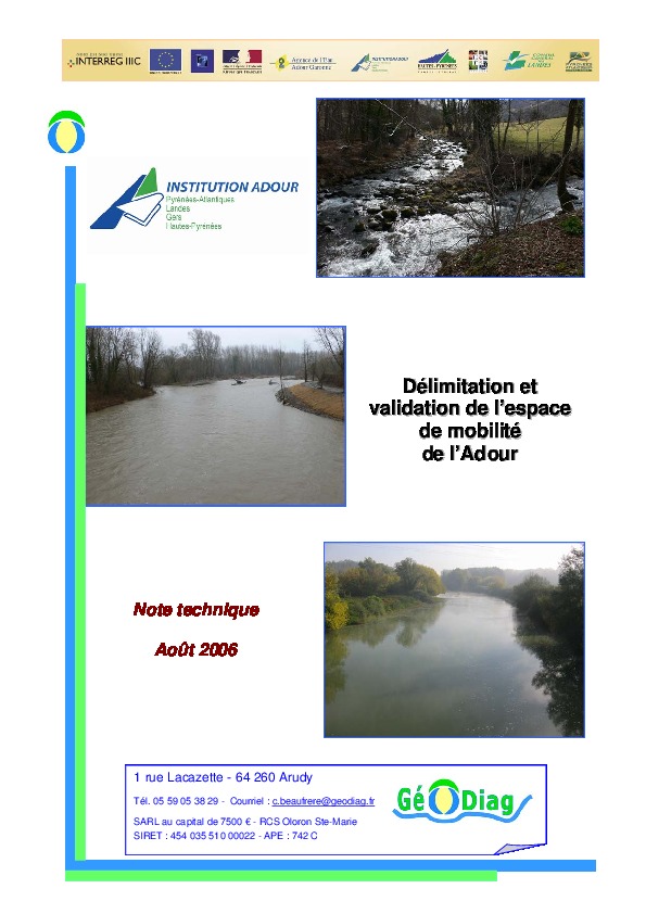 Délimitation et validation de l'espace de mobilité de l'Adour. Note technique.