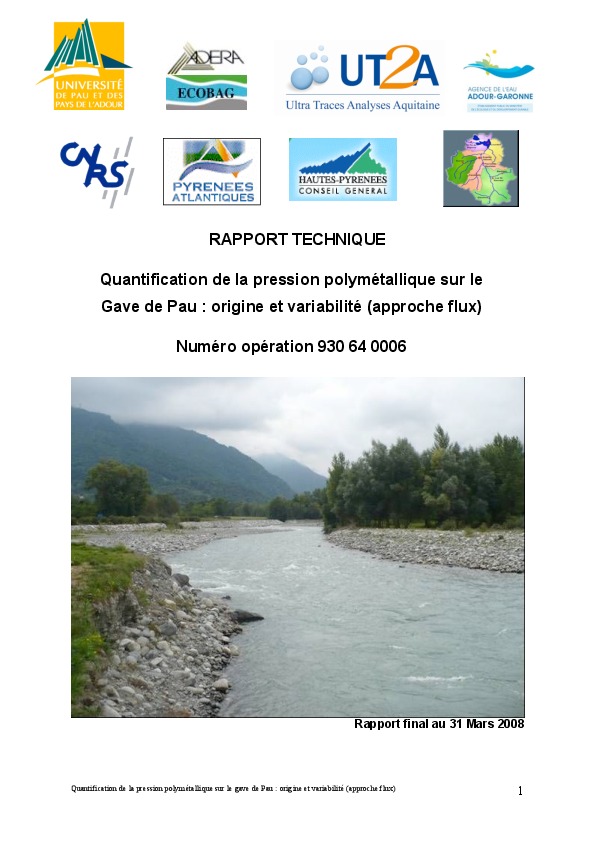 Quantification de la pression polymétallique sur le Gave de Pau : origine et variabilité.