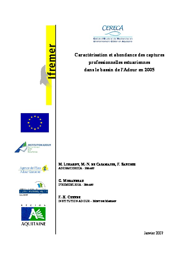 Caractérisation et abondance des captures professionnelles estuariennes dans le bassin de l'Adour en 2005.