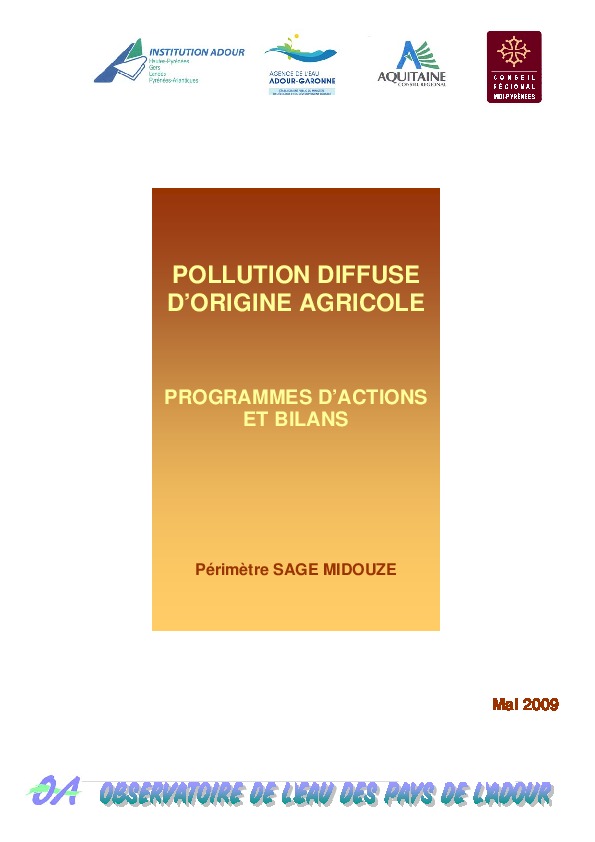 Pollution diffuse d'origine agricole. Programmes d'actions et bilans. Périmètre SAGE Midouze.