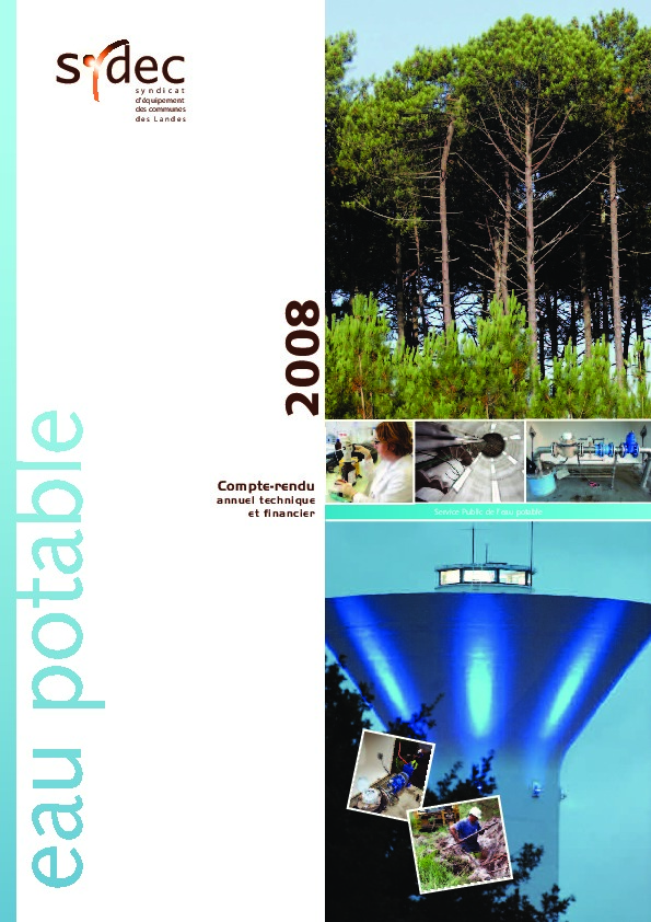 SYDEC des Landes. Compte-rendu annuel technique et financier. 2008. Eau potable.
